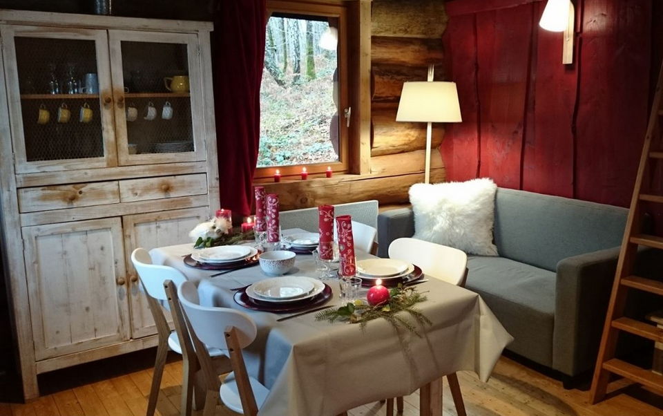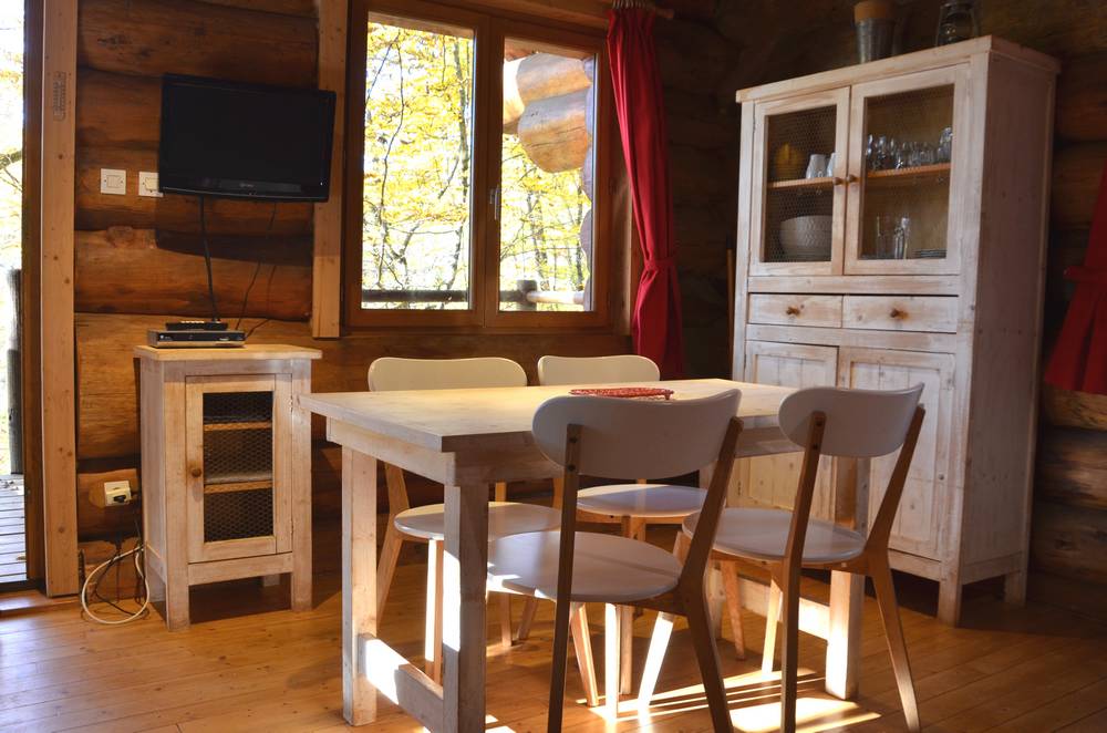 Traditional log cabins in the heart of the forest, facing a private fishing pond in unspoilt surroundings. They are fully equipped for a long stay with 2 bedrooms and a mezzanine for some, kitchen, living room with television, shower room. Covered terrace with gas hob. A fuste is a wooden construction whose walls are made from rough (uncalibrated) trunks, simply debarked by hand and stacked. The trunks fit together lengthways and are criss-crossed at the corners. The construction of a cask is based on a very old traditional woodworking technique. The art of the woodworker lies in choosing and orienting each log to create harmony and a warm, comfortable atmosphere.