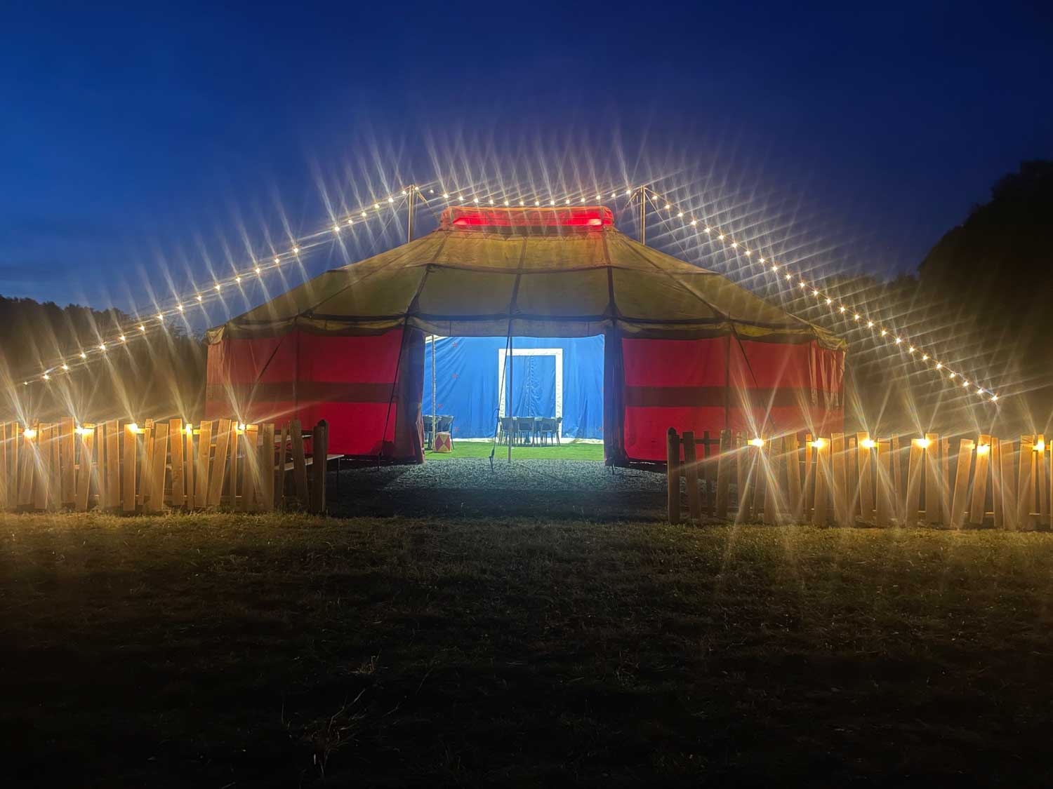 Celebrate under a real circus tent (190m²), accommodating up to 80 seated guests in a unique and even magical atmosphere! Depending on your preferences, we can also organize on-site catering, featuring shared dishes cooked over a large brazier—ribeye steak, suckling pig on the spit… An authentic and convivial culinary experience that will delight your guests. We offer tailored packages for every occasion, allowing you to personalize your event to your wishes.