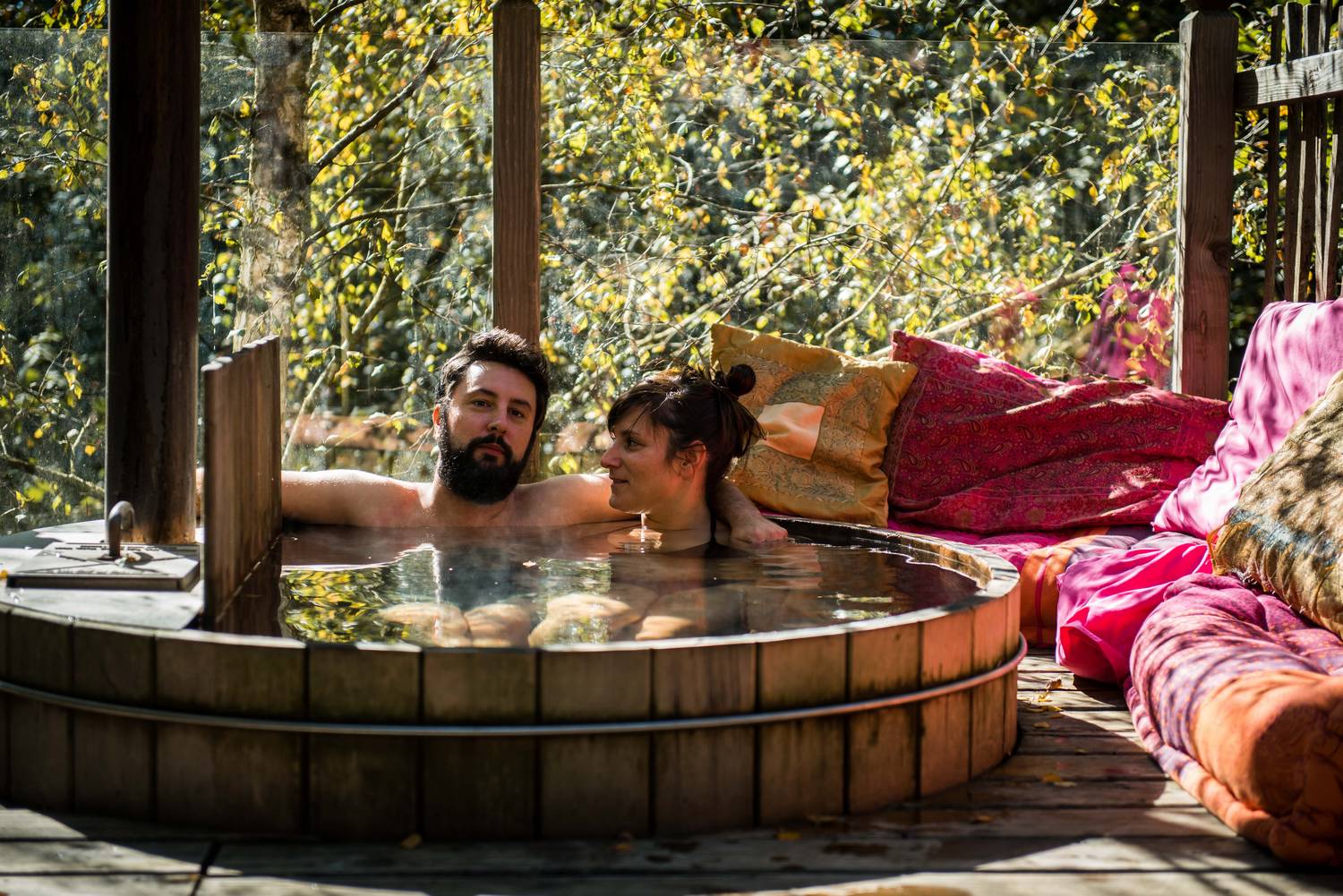 Your stay includes a private Nordic spa heated to 38°, access to a covered and heated swimming pool, and the chance to fish in our private pond. You'll also be free to enjoy the canoes on the banks of the pond, venture into the plant maze, and let the kids have fun in the playground. There's also a petanque court and a barefoot walking trail for a unique sensory experience.