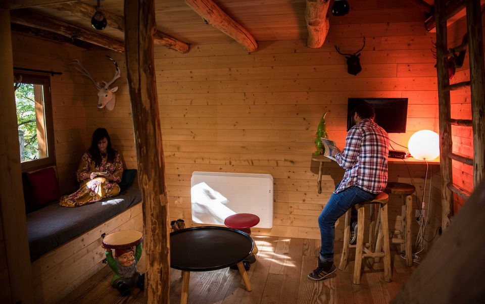 Perched at a height of 4 metres, this family cabin can sleep up to 6 people.