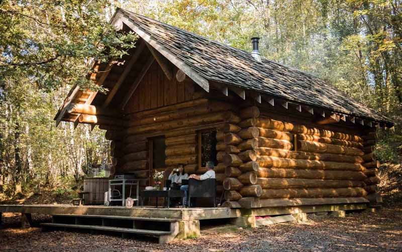 A l'intérieur vous découvrirez la douceur de l'alliance du bois rond et des matériaux bruts comme le fer, le verre ..... le tout niché dans le cadre naturel d'une forêt en Périgord.