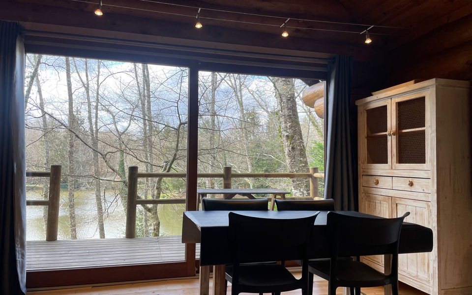 Traditional log cabins in the heart of the forest, facing a private fishing pond in unspoilt surroundings. They are fully equipped for a long stay with 2 bedrooms and a mezzanine for some, kitchen, living room with television, shower room. Covered terrace with gas hob. A fuste is a wooden construction whose walls are made from rough (uncalibrated) trunks, simply debarked by hand and stacked. The trunks fit together lengthways and are criss-crossed at the corners. The construction of a cask is based on a very old traditional woodworking technique. The art of the woodworker lies in choosing and orienting each log to create harmony and a warm, comfortable atmosphere.