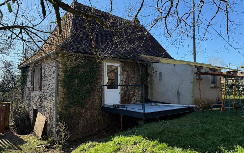 Completely renovated Perigordian country house, offering a lovely fitted kitchen with central island, a spacious living room and a ground floor bedroom with two 80 cm beds or one 160 cm bed. Upstairs, a large bedroom with a 160 cm bed and an 80 cm bed. The house has a bathroom with walk-in shower and separate toilet.