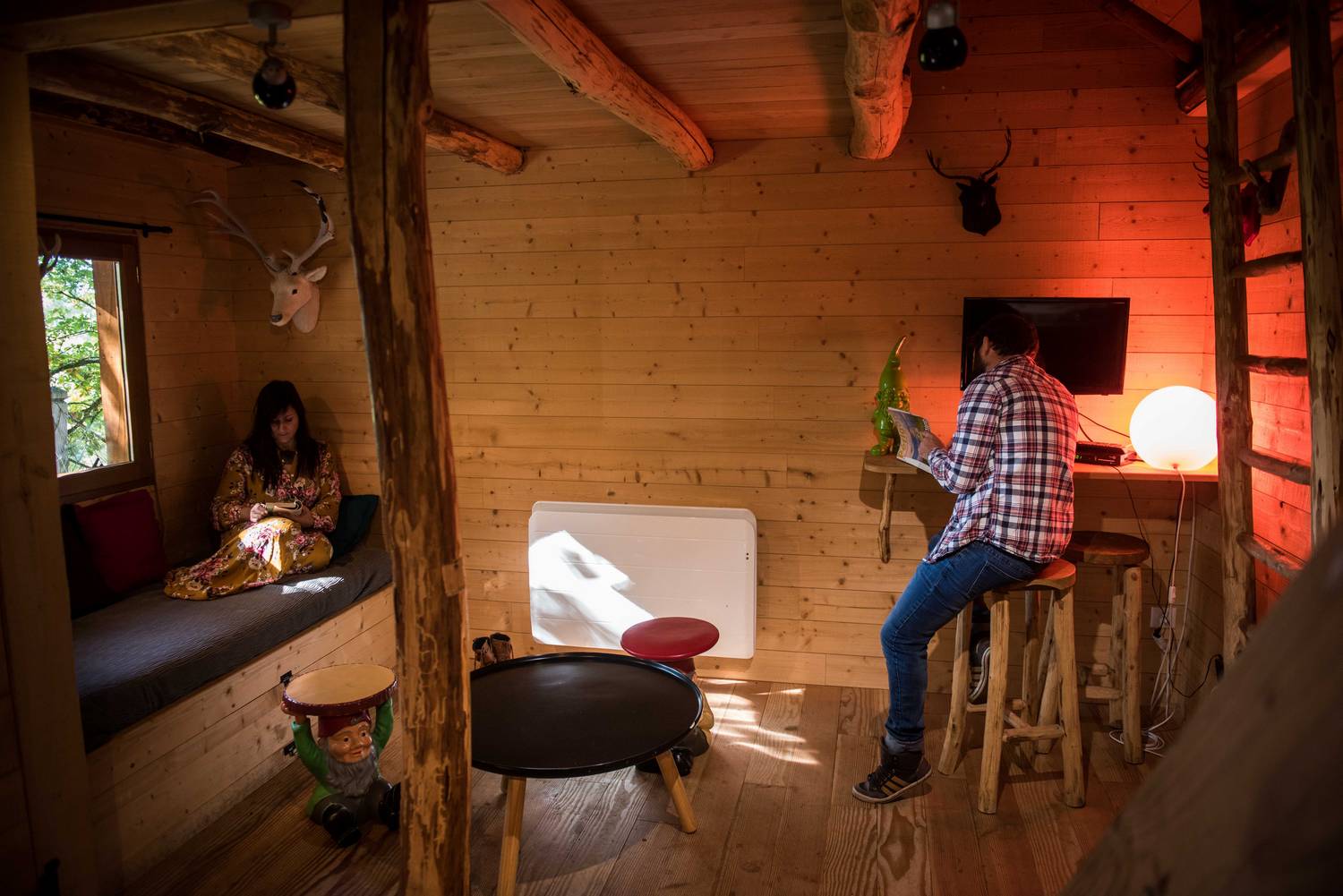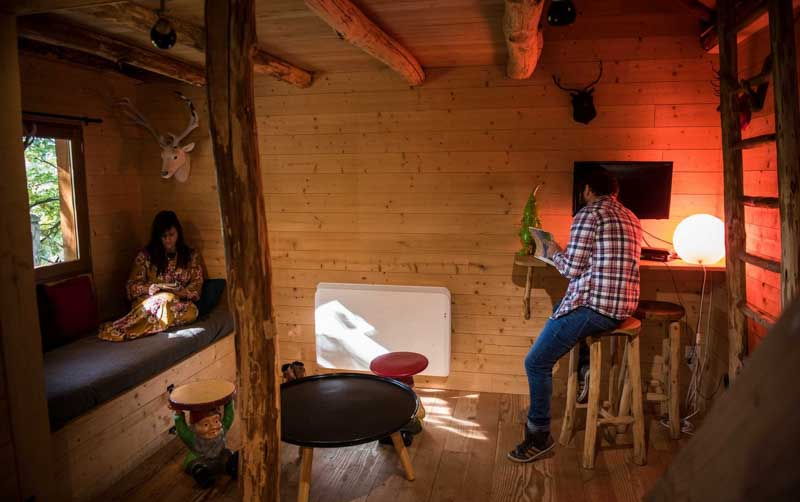 Perched at a height of 4 metres, this family cabin can sleep up to 6 people.