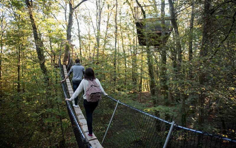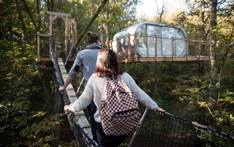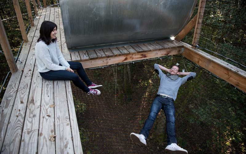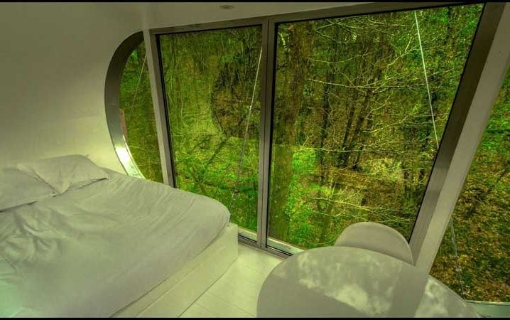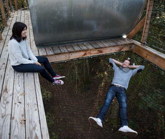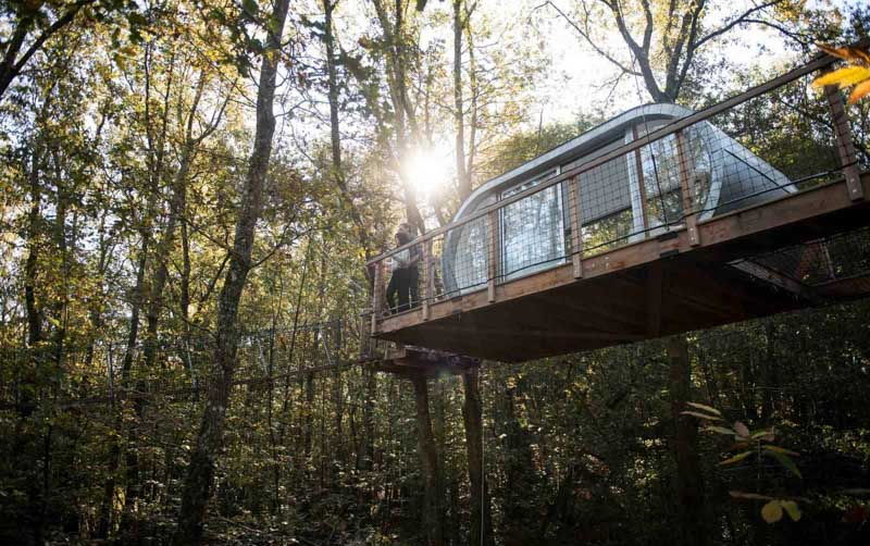 Le Module est la plus haute de nos cabanes ! Haubanée à plusieurs arbres elle semble suspendue au delà des cimes ! Perchée à plus de 12 m et accessible par plusieurs ponts de singe sécurisés, elle est la promesse d'une nuit au plus proche de la nature. Un grand lit en 140, une table et des chaises compose cette cabane unique. Ses grandes parois vitrées, son intérieur immaculé, sa terrasse suspendue vous offriront l'intime sentiment de faire UN avec son environnement préservé. Un design proche de la transparente pour une immersion magique au cœur d'une forêt que vous pourrez vivre, rêver et profiter en toute liberté. L'accès nécessite un effort physique et une certaine adresse.